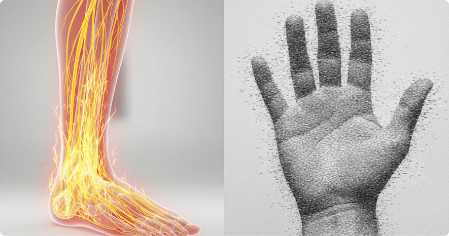 Even if it starts in your feet or hands, many people find that it shows up in other areas, like the legs, lower back, or arms.