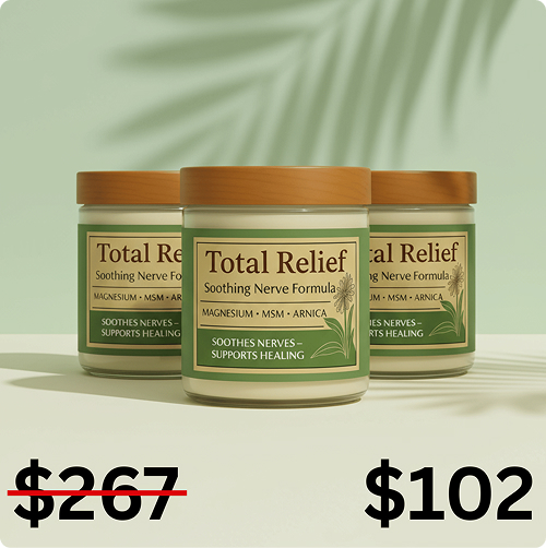 Click the big green button below, select 3 or 6 Total Relief Magnesium Cream jars, and order today for 50-67% OFF depending on which package you choose.